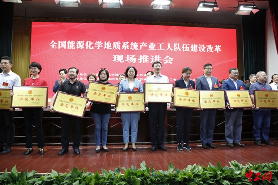 5月25日,全国能源化学地质系统产业工人队伍建设改革现场推进会在江苏徐州召开。会议对28家全国能源化学地质系统产改示范单位进行授牌,国药控股江苏有限公司荣获“示范单位”称号。未来,国控江苏将进一步总结经验,聚焦重点,高起点推进产改,扎实推进产业工人队伍建设改革走深走实。